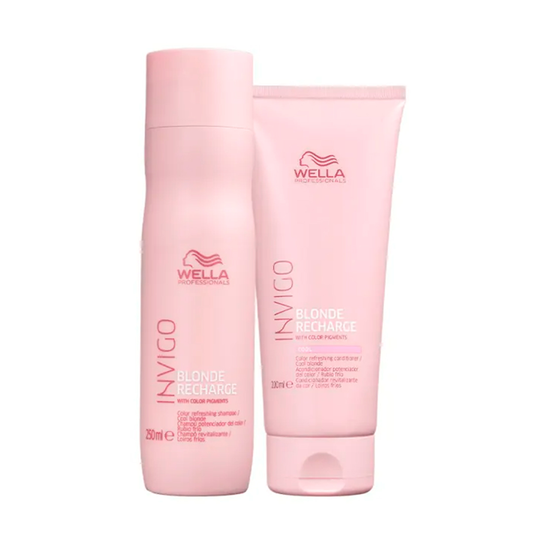 Shampoo desamarelador para cabelos loiros coloridos, naturais ou com mechas. Wella Professionals Invigo Blonde Recharge elimina os tons amarelados e acobreados indesejados com seus pigmentos violeta.